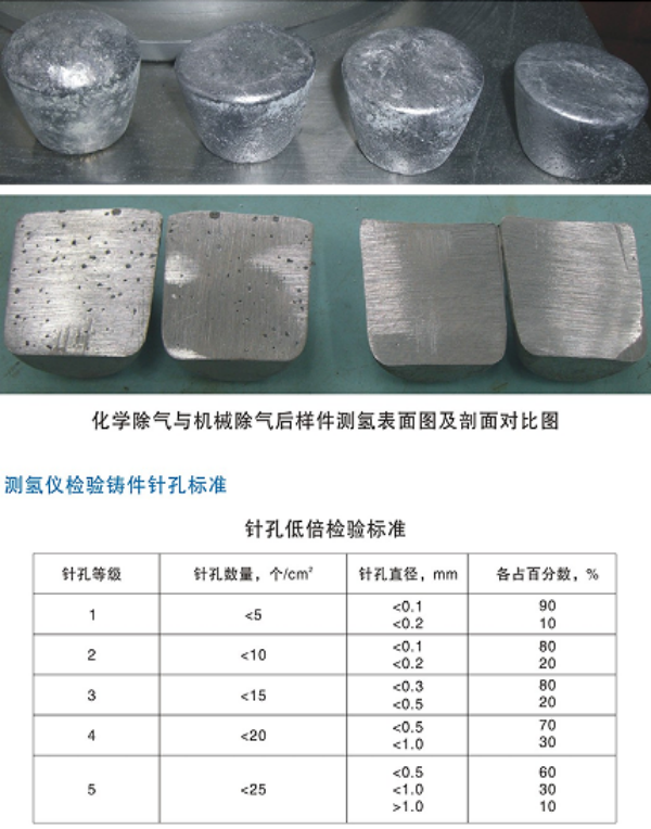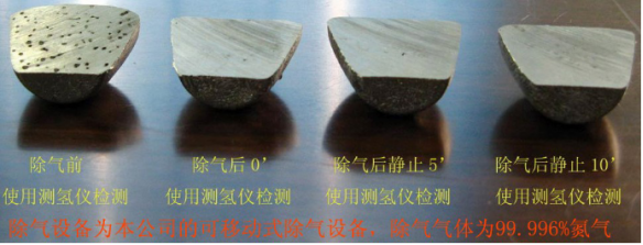 3.需要通过抛光截面并酸洗后按照国家对针孔等级的说明来判断除气效果。